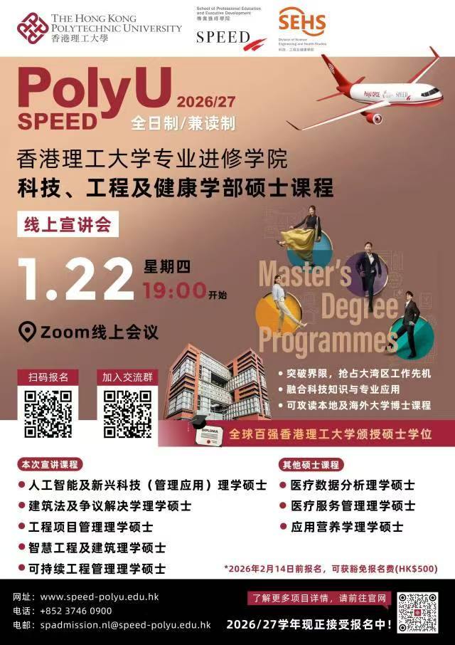 普本生福利!香港理工大学SPEED学院线上宣讲会预约通道开启!!直面教授,锁定录取席位!